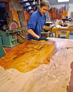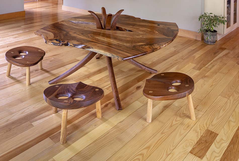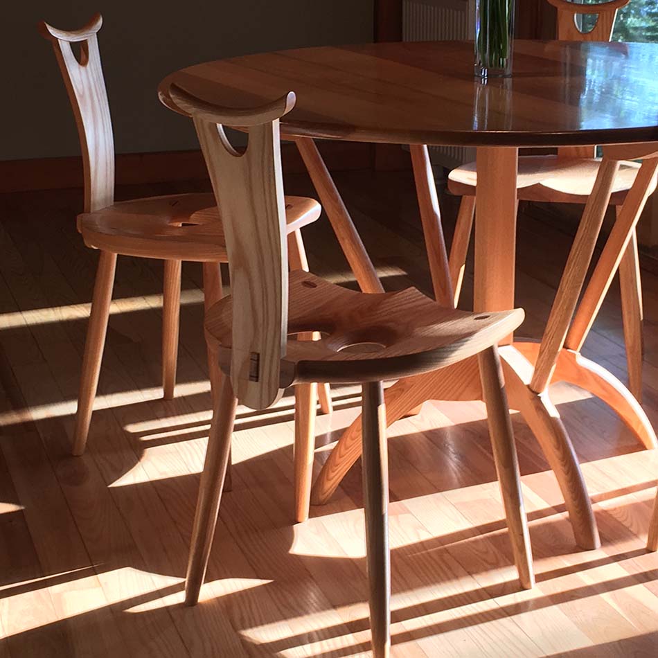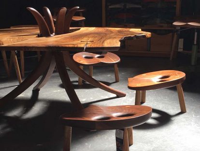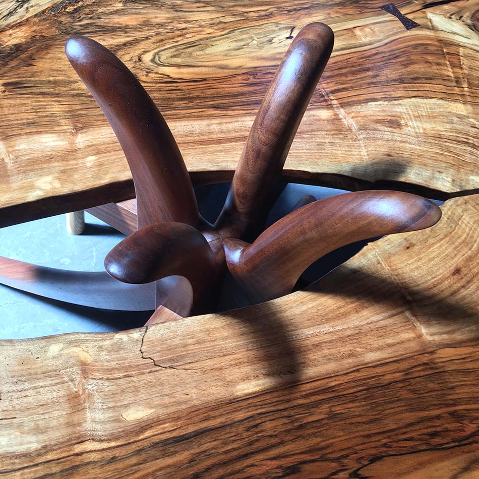 With a constant stream of Owl chairs and stools being ordered by our happy customers, there is often a need for a beautiful table to complete a need or a dream. Have you ever had a conversation with a beautiful slab of wood? Consider this possible while conversing with Geoff about your commission!